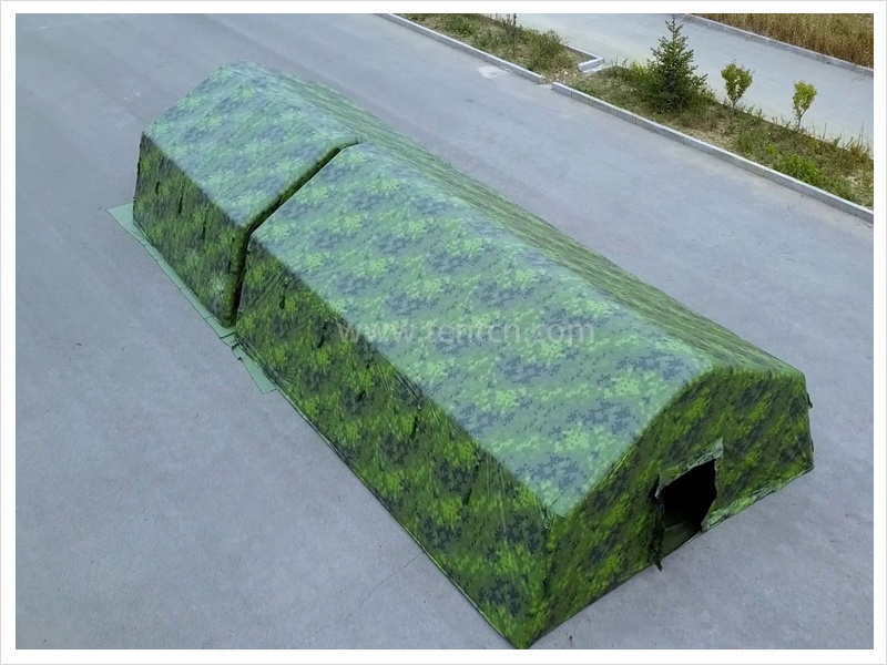 快速部署型彈藥帳篷是野戰(zhàn)彈藥庫系統(tǒng)的配套設備之一,主要用于野外條件下整箱/零箱彈藥、火工品儲存及轉運過程中的儲存防護。帳篷采用閉氣式氣肋結構,外披篷布、帳體與氣柱粘合連接,架設撤收方便快捷。整體采用防靜電能力良好的涂層布,可有效避免因靜電發(fā)生彈藥走火的情況。同時外披篷布與帳體雙層構架中空式設計,隔熱、保溫性能極佳
